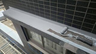 塗装工事躯体塗装の様子です。躯体塗装、外壁塗装、鉄部塗装で錆止めの種類や仕上げの塗料が異なります。