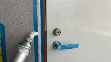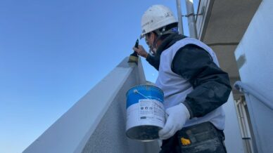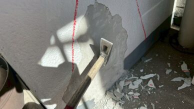 鉄部塗装工事鉄部塗装の上塗り作業です。下地補修工事浮いていた外壁を壊して下地補修をします。シーリング工事シーリング工事の様子です。