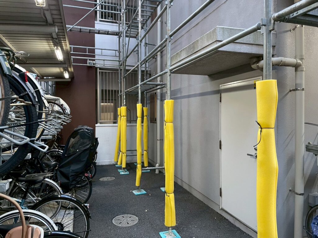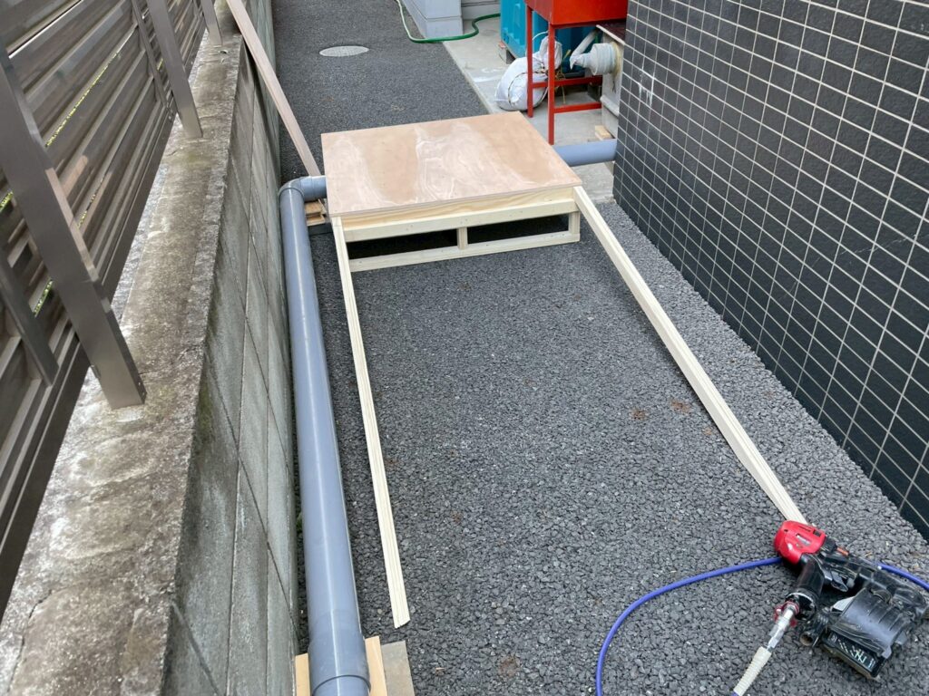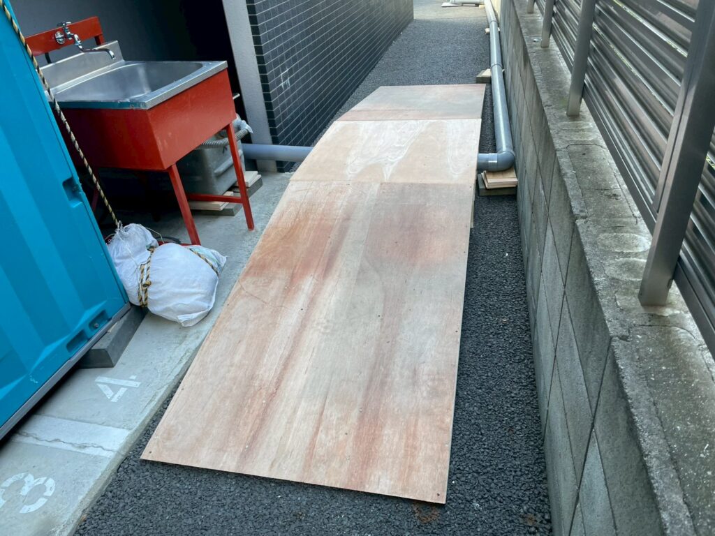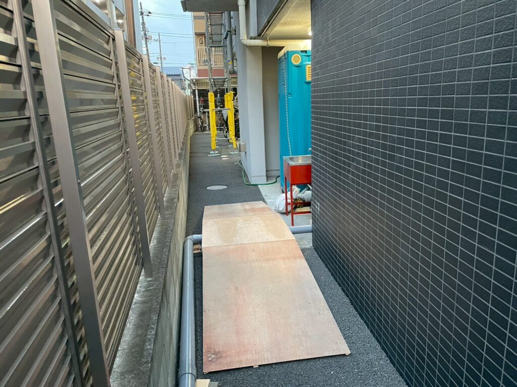 給排水の関係で、通りにくくなっております。通行する際はお気をつけてお通りください。
