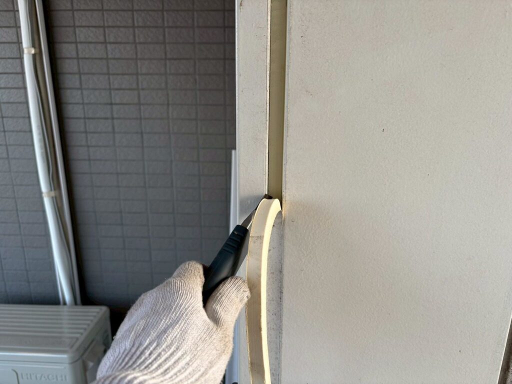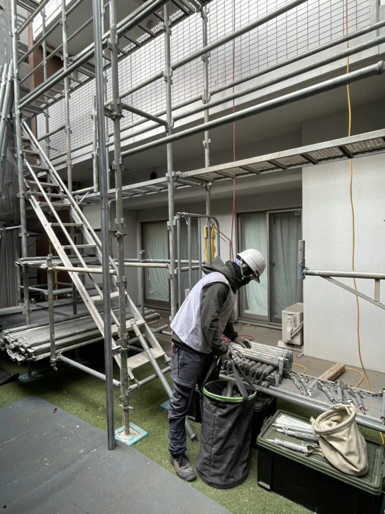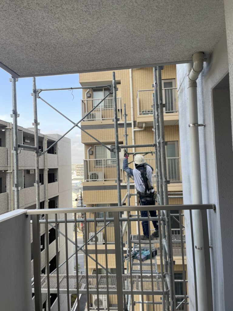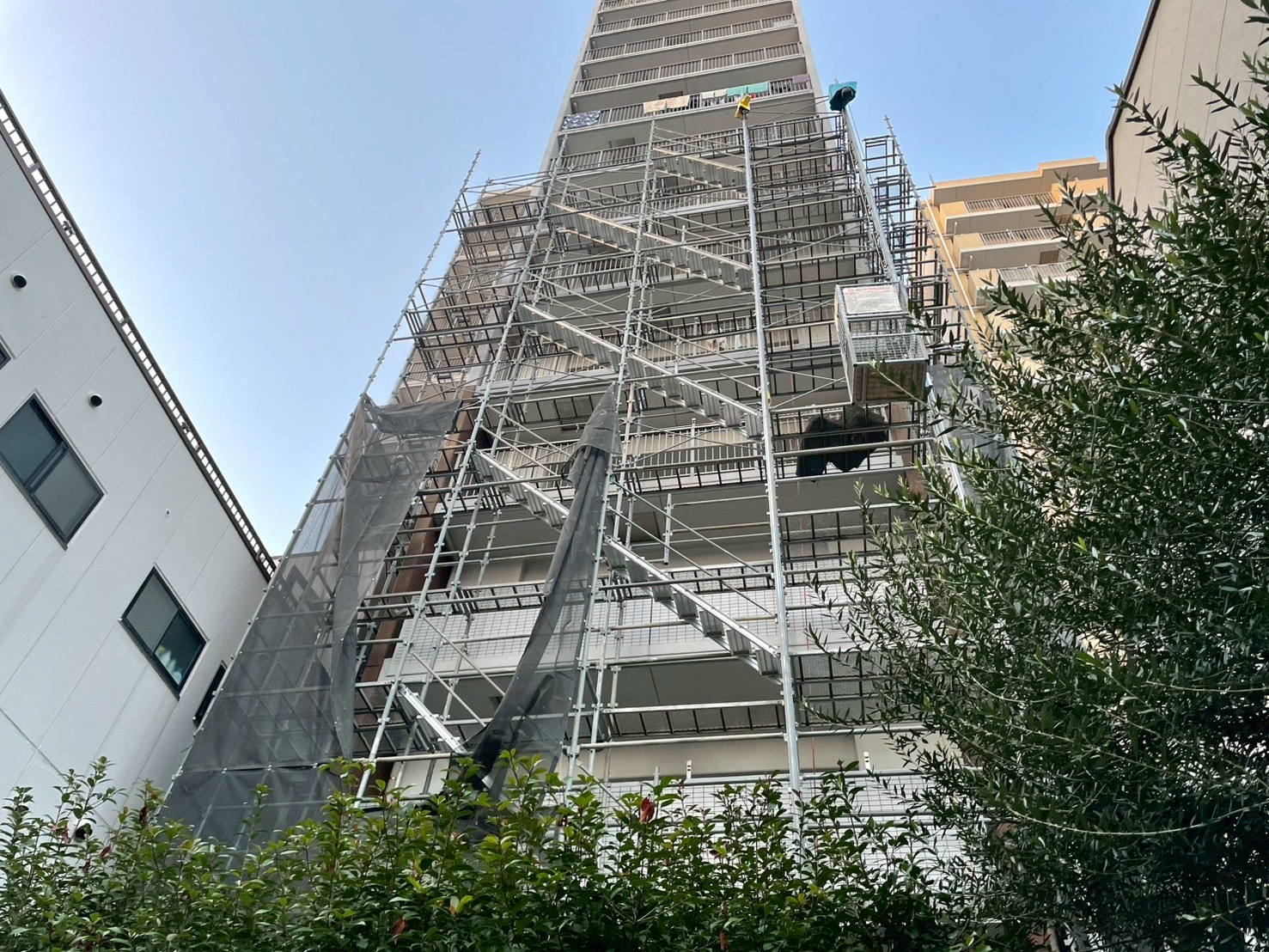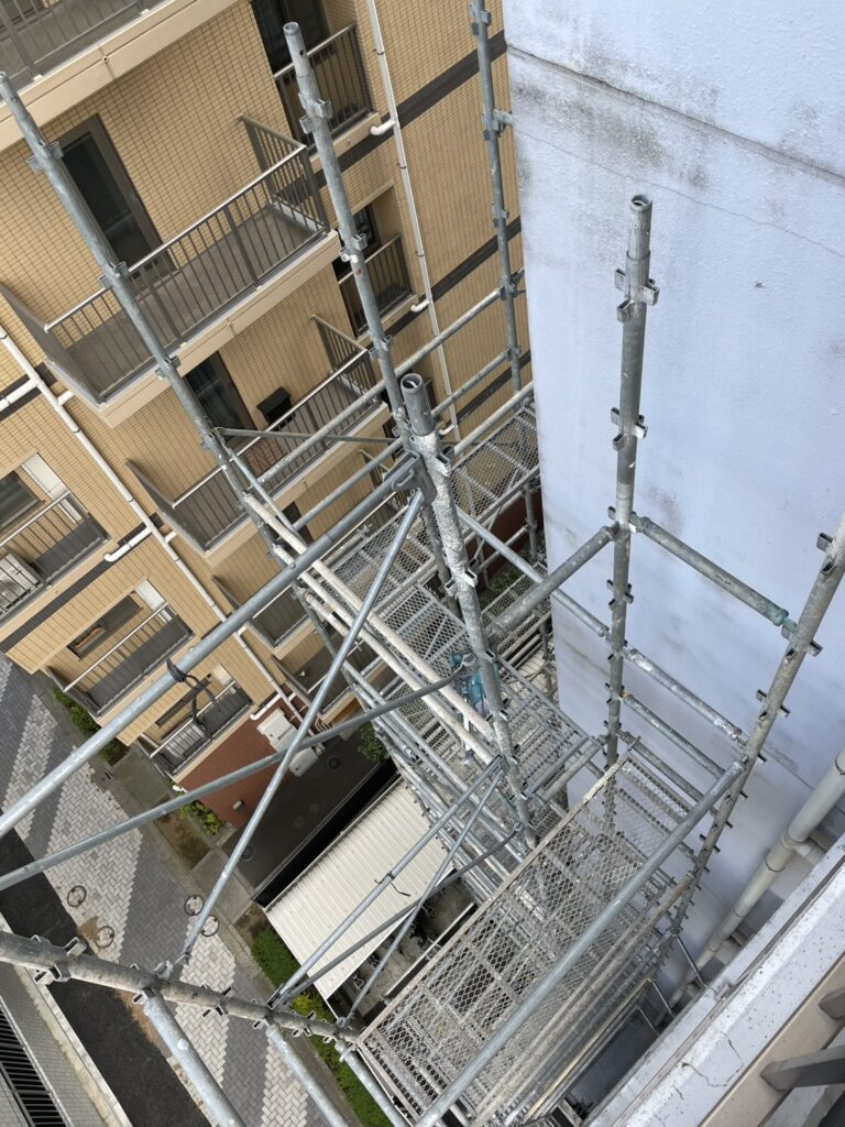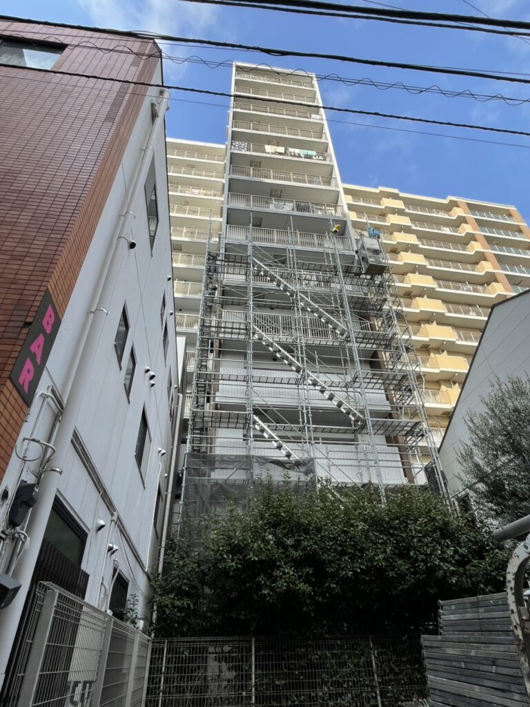 1/19足場が中間まできました 工事情報 2026.01.192026.01.20 目次 足場シーリング工事 足場 足場がどんどん組みあがります。まだ足場の上で作業ができない仮の足場となります。最後には落下防止対応や周りをフェンスで囲い完成します。 シーリング工事 古くなったシーリング材を撤去する作業です。サンクレイドルが完成する事に造られた建物では、軟化現象という材料の不具合が多かったのですが、サンクレイドルでは今のところ軟化している不良部分はありません。そのため順調に進んでおります。