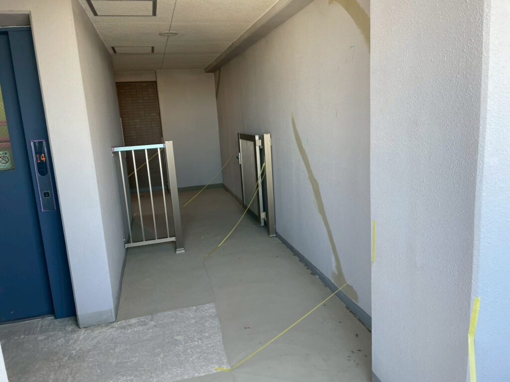 1月27日 補修作業 工事情報 2026.01.272026.01.29 目次 下地補修足場工事シーリング工事 下地補修 廊下の長尺シートの撤去後の下地補修と、廊下の内壁の補修作業です。 足場工事 トラブルもなく順調に組みあがっていきます。 シーリング工事 丁寧にな作業で耐用年数が変わってしまうシーリング工事です。