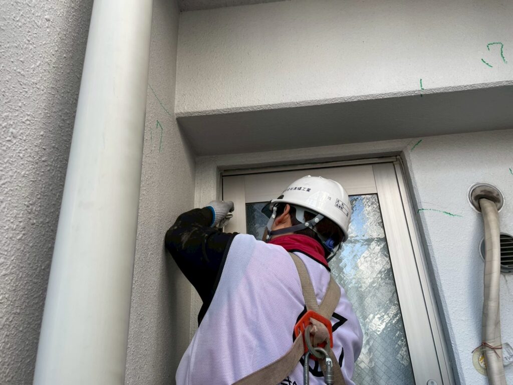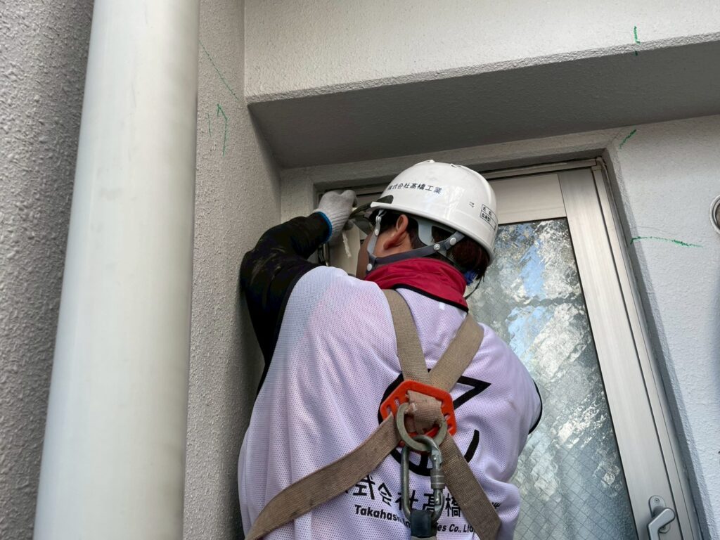 1月30日 下地調査中 工事情報 2026.01.302026.02.02 目次 下地調査足場工事シーリング工事 下地調査 引き続き下地調査を実施しております。浮いているところやひび割れをしているところにテープを貼ったしマークをつけてます。 足場工事 足場もしっかり出来上がってきました。今のところ事故等がなく順調に進んでおります。 シーリング工事 シーリングの打ち換え作業が進んでおります。