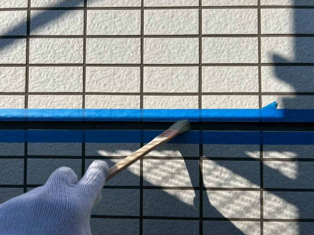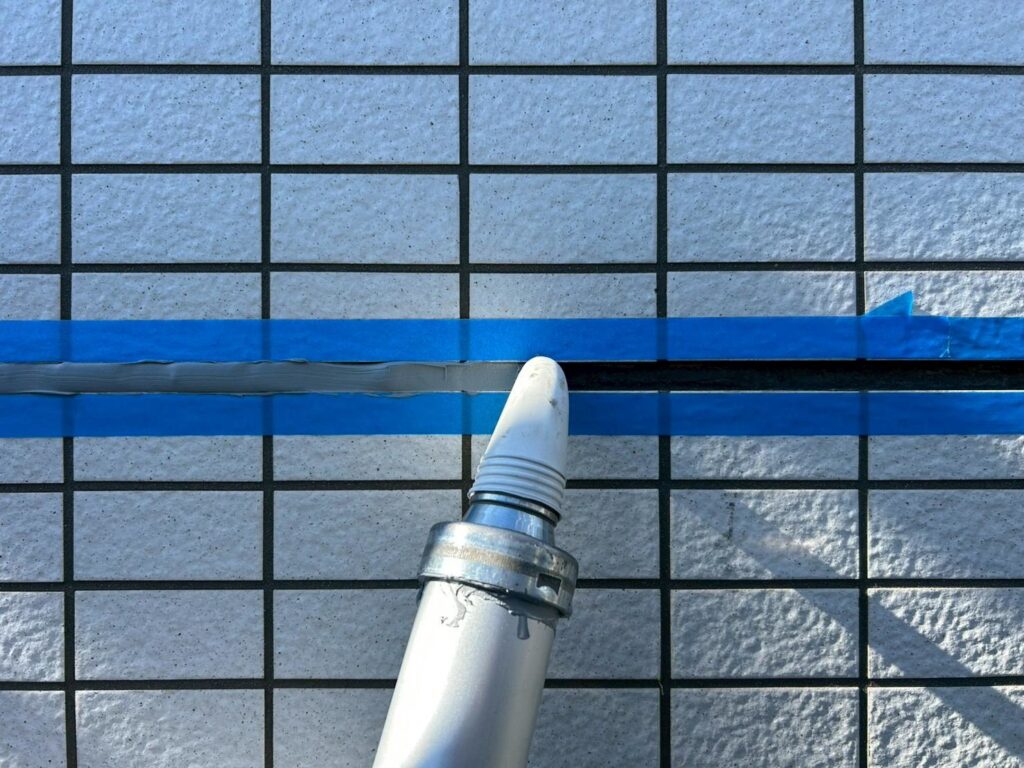 シーリング工事の一連の流れです。先日のシーリング撤去で綺麗になった所にさらに細かいゴミも取り除きます。ここでしっかり綺麗にする事が長持ちする秘訣です。些細なゴミなどがあると劣化してきた時に剥がれの原因になります。その後、接着剤のような塗料を塗った後にシーリング材を打ちます。シーリング材はピッタリではなく少し多めに入れます。そうする事で綺麗に伸ばしていったときに奥深くまでしっかりシーリング材が付きます。最後にマスキングテープを剥がして完成です。