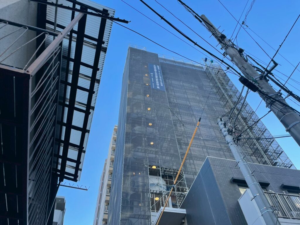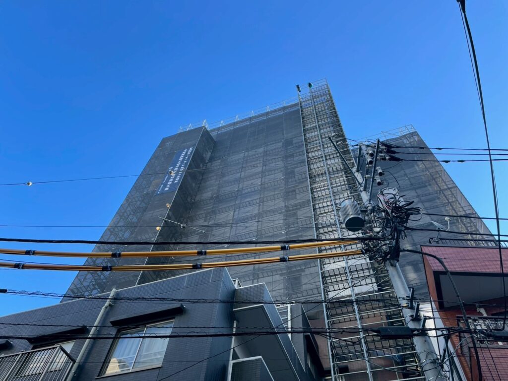いよいよラストの1~3階のエントランス付近の足場作業に入ります。