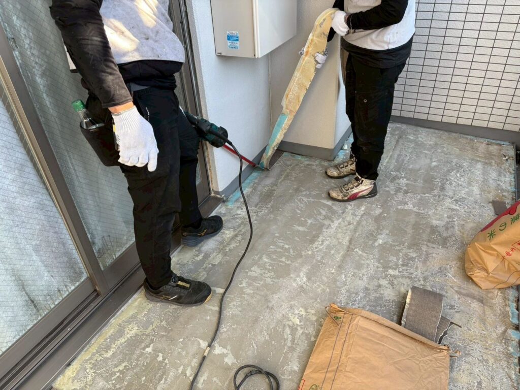 2月9日 バルコニーの長尺シート作業 工事情報 2026.02.092026.02.12 目次 長尺工事シーリング工事 長尺工事 バルコニーの長尺シートの剥がし作業が進みます。 シーリング工事 古いシーリングを撤去し新しいシーリングを打ちます。マスキングテープで養生せずシーリングを打つところは上から塗装で仕上げる場所です。