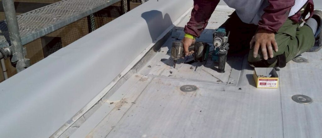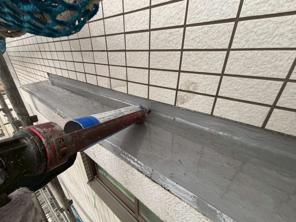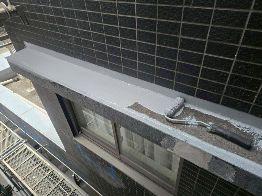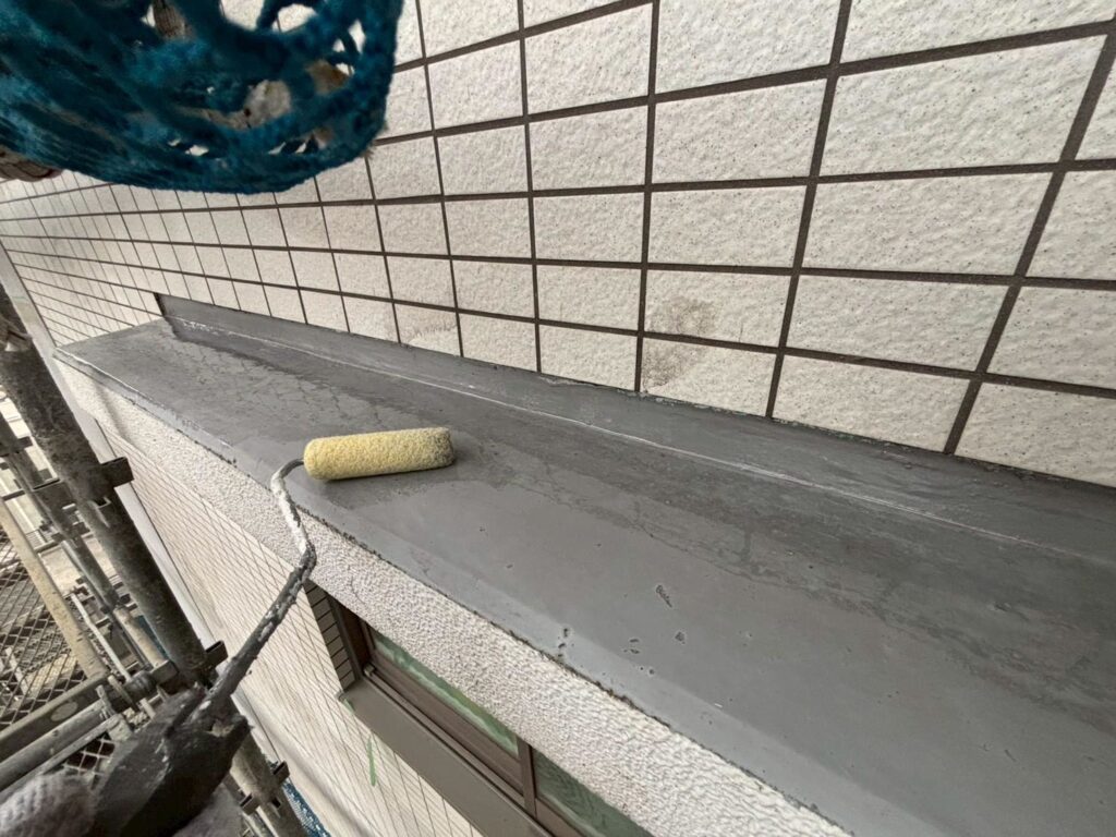 3月19日 サッシ上の防水工事 工事情報 2026.03.192026.03.25 目次 各種防水工事塩ビシート処理塗装工事 各種防水工事 ウレタン塗膜防水の工事の様子です。隅にシーリングを打つは入り隅シーリングといい防水工事業者ならではの作業です。このシーリングを打ってるか打ってないかで全然変わるので、大事な作業となります。 塩ビシート処理 屋上の塩ビシートの作業の様子です。 塗装工事 各種塗装工事の様子です。